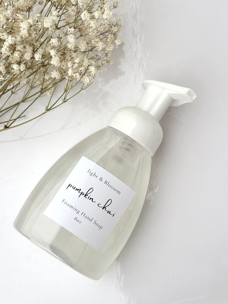 Pumpkin Chai fills your hands with creamy foaming bubbles and the soft scent of spiced pumpkin, sweet vanilla, and gentle chai spice.
