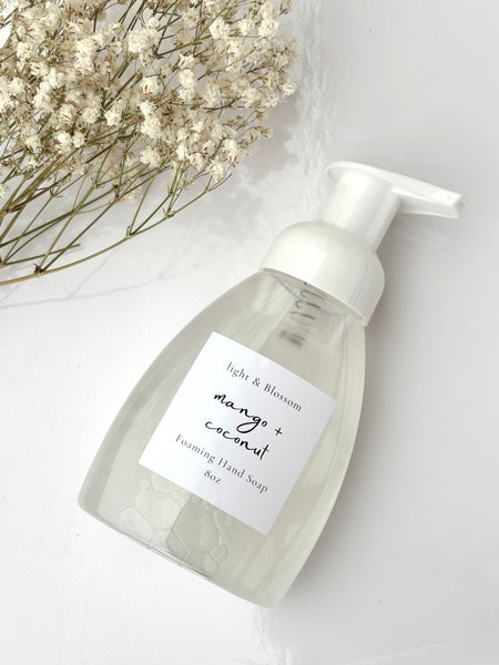 Mango Coconut blends juicy mango with creamy coconut for a sweet, refreshing foaming soap that leaves your hands clean and lightly scented.